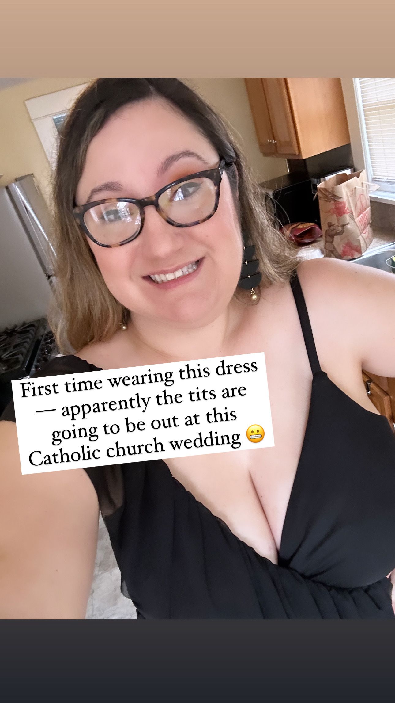 The wedding ceremony was a full Catholic mass in a historic mission at the center of downtown Ventura, which was pretty cool; we walked a few blocks and got Americanos between the ceremony and reception. Inspired by the suggestions on the wedding website, I brought a little black dress to wear. Unfortunately, I had not even tried it on before the day of the wedding, and lord, there was a lot of cleavage!! Tits were OUT, before God and baby Jesus and the Holy Spirit! Luckily for me, it was gray and chilly that day, so I spent pretty much the whole wedding covered up with a wrap. But let this be a lesson to all: try on the dress before the church wedding!
