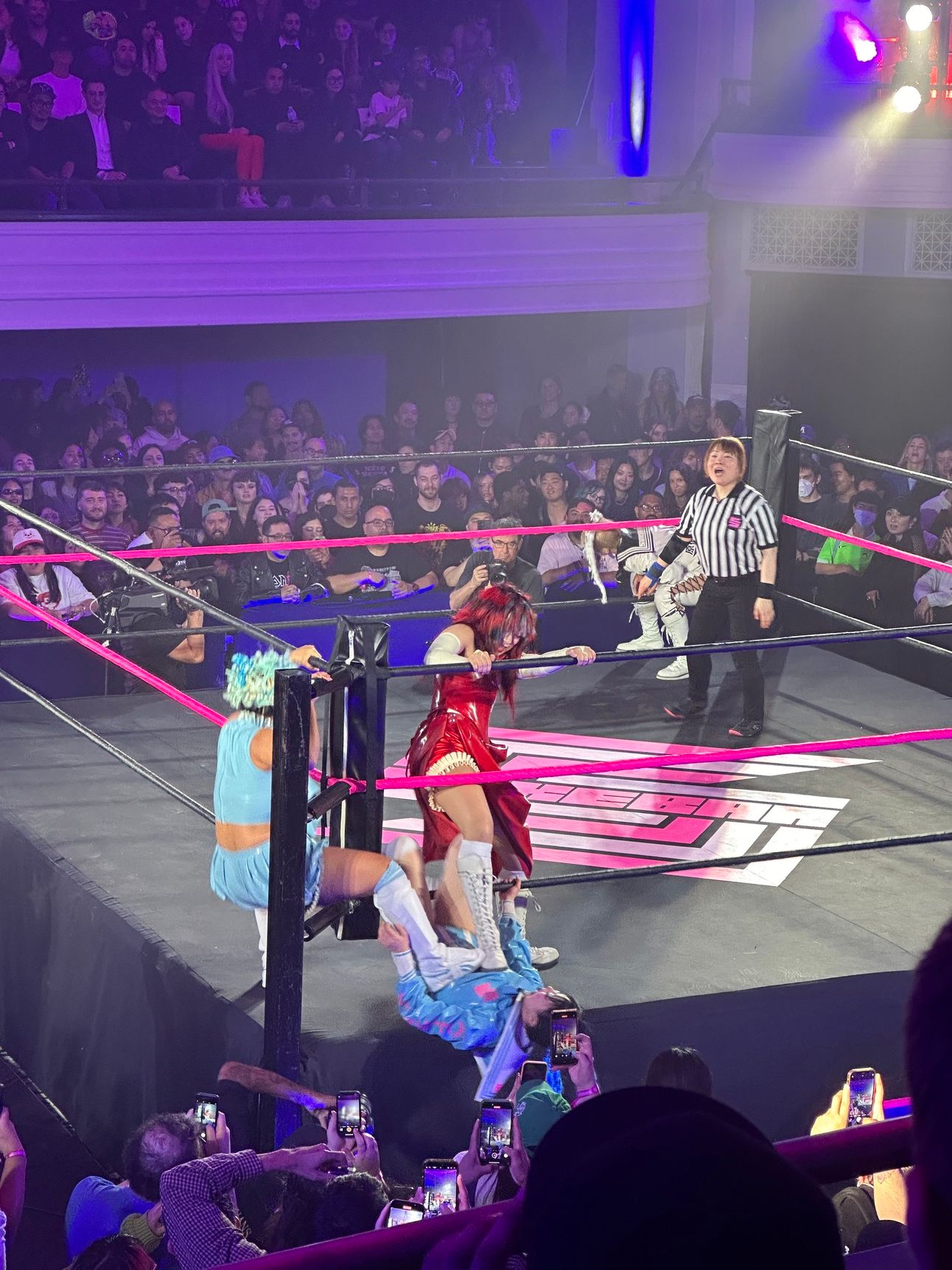 Speaking of things that haven’t happened, well, ever: last Thursday, Ross and some friends and I went to see Sukeban, a Japanese female pro wrestling show. We got the tickets through Ross’s mom because one of the producers is a family friend, and the vibe was very, “please please come, we just need butts in seats.” To be honest, we were expecting something pretty rinky-dink. Well, let’s just say they definitely did NOT need our butts in those seats! It was a whole scene! The Gen Zers were out in droves. People dressed up and wore cool outfits and shit. I paid $12 for a White Claw, and that was the cheapest alcoholic drink option!