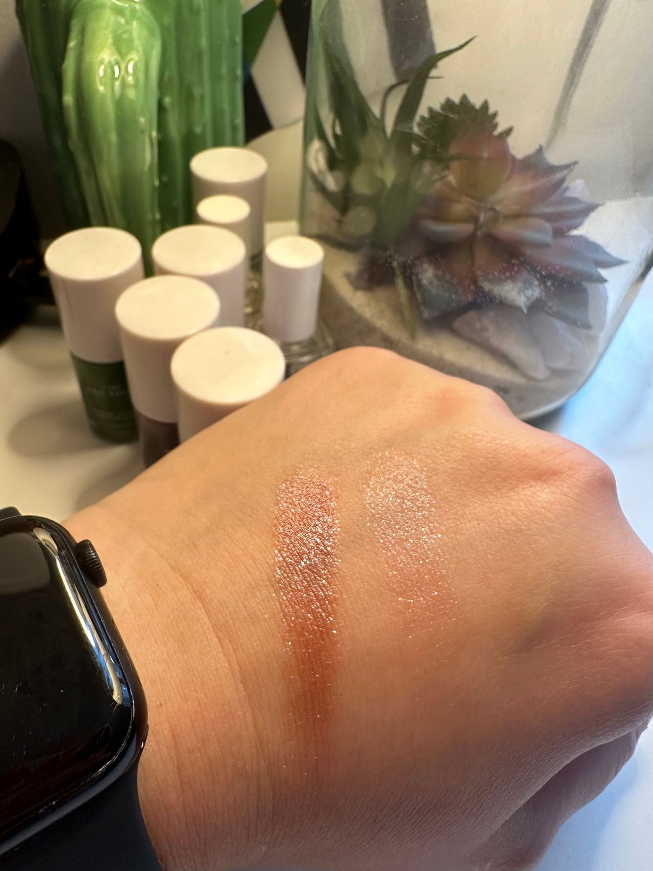 UD’s Space Cowboy (L) vs. e.l.f.’s Champagne Showers (R)