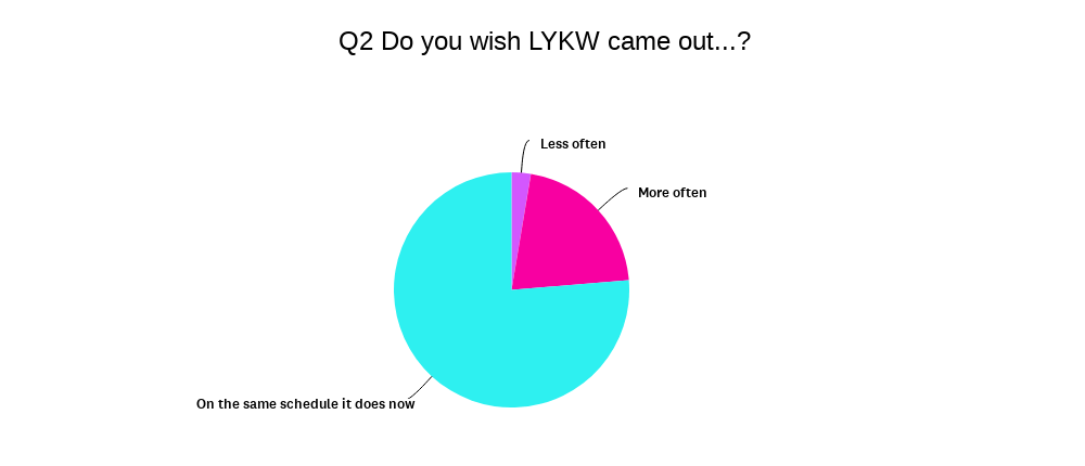 - Survey results!! Thank you so much to everyone who filled out the 2024 Like You Know Whatever Survey. All in all, about 6% of you responded. I appreciate every single one of you who took the time to respond! Let’s get into it: